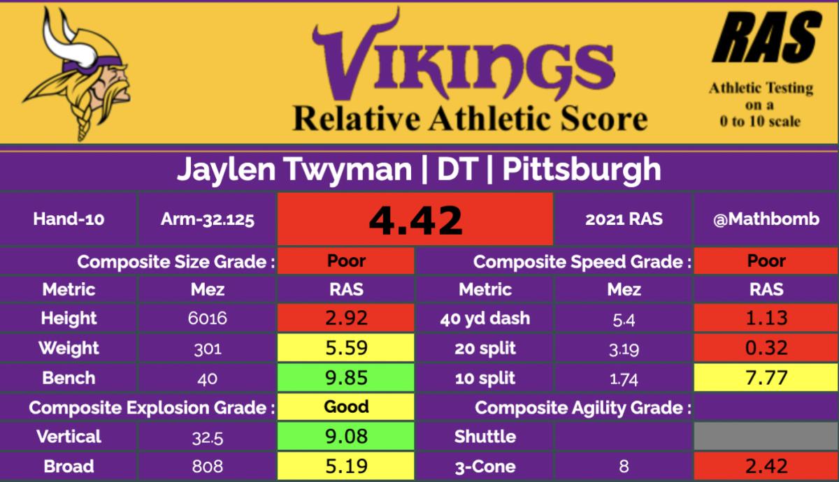 Draftees Ihmir Smith Marsette Zach Davidson Jaylen Twyman Agree To Terms With Vikings Twin Cities from www.twincities.com Here's jaylen twyman bench numbers from his pro day. Analysis twyman opted out of the 2020 season but was a highly productive contributor to a smothering pittsburgh run defense in 2019, a season where twyman also dominated as a * all metrics are from his pro day (not the combine). The trouble with his evaluation is that he has not played football in a year, only has one season of production and tested much poorly than his 2019 film would. Two sides of jaylen twyman were exposed wednesday when he returned to pitt. He racked up 10.5 sacks as a junior in 2019 and was gaining buzz as a potential day 2 but twyman opted out in 2020, causing his stock to fall a little, and put up mostly awful athletic numbers at pitt's pro day, causing his stock to plummet. Minnesota drafted toyman with the 199th decide in could. Wrong place, wrong time, twyman's agent drew rosenhaus said, via schefter. There was a superficial exit wound, drew rosenhaus said.